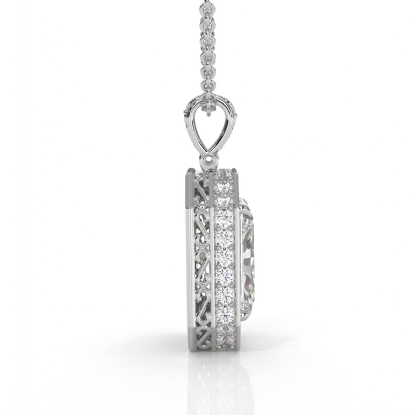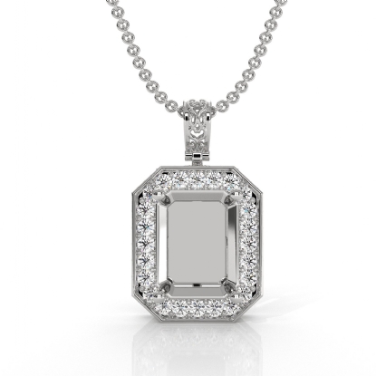 Pave Set Diamond Halo Radiant Cut Solitaire Pendant in 18k W Gold (0.61Ct. tw.)