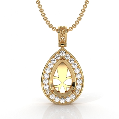 Pave Set Diamond Halo Solitaire Pendant Accent Pear Cut in 18k Gold (0.56Ct. tw.)