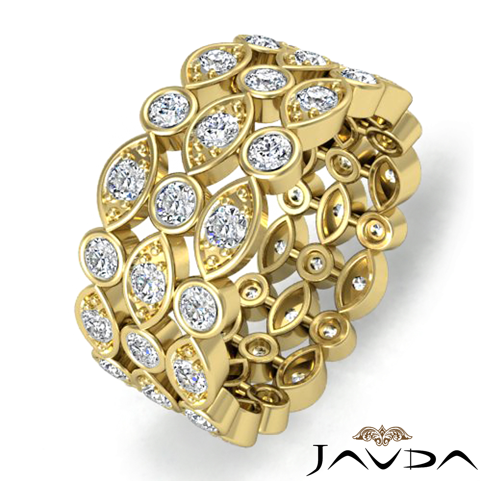 Round Diamond Pave & Bezel Set on A Women's Eternity Wedding Anniversary Band 18k Gold Yellow Ring. (1.3Ct. tw.)