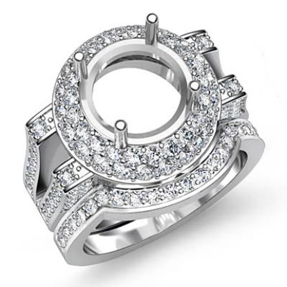 Diamond Engagement Ring Round Semi Mount Bridal Set 18k W Gold (1.45Ct. tw.)