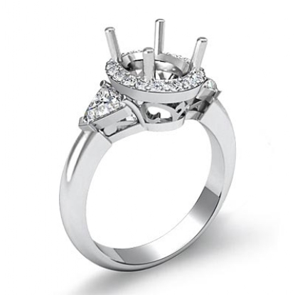 3 Stone Diamond Engagement Trillion Oval Semi Mount Ring 18k W Gold Setting (1Ct. tw.)