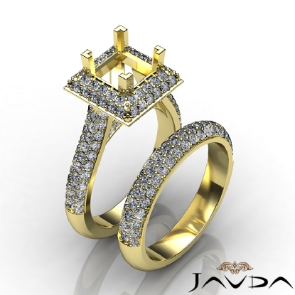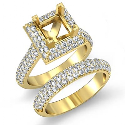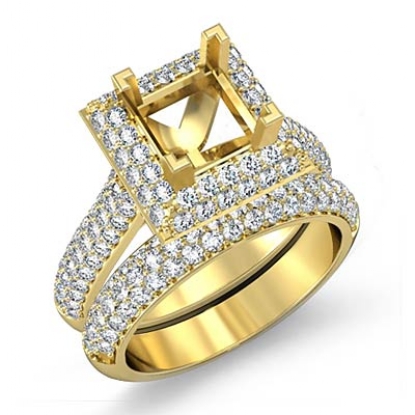 Stunning and intricate, this bridal set consists of a semi mount engagement ring and a matching band with round pave set diamonds. Made in 14k Gold Yellow, this set will be loved by her! (2.9Ct. tw.)