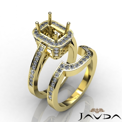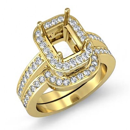 Elegant in simplicity, this semi mount engagement ring with matching band features round pave set diamonds in halo and along the shank. This stunning bridal set is made in 14k Gold Yellow. (1.62Ct. tw.)