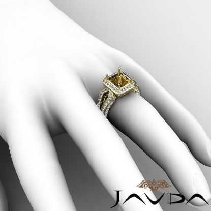 Diamond Engagement Ring Emerald Semi Mount 14k Gold Halo Setting (1.4Ct. tw.)