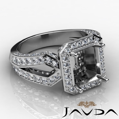 Diamond Engagement Ring Emerald Semi Mount Platinum Halo Setting (1.4Ct. tw.)