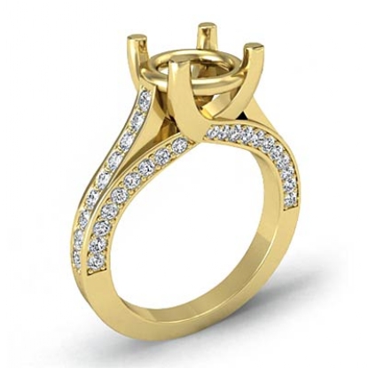 Diamond Engagement Women Pave Set Ring Round Semi Mount 14k Gold (0.76Ct. tw.)