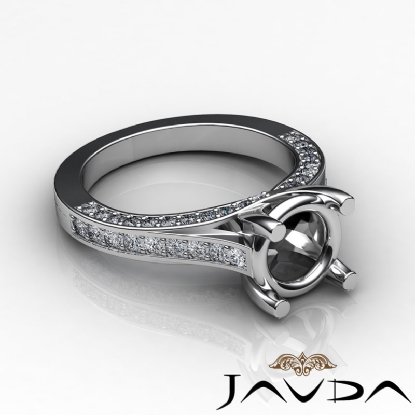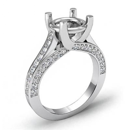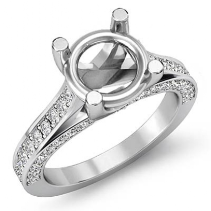 Diamond Engagement Women Pave Set Ring Round Semi Mount 18k W Gold (0.76Ct. tw.)