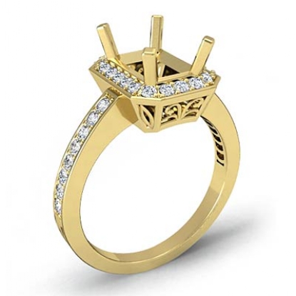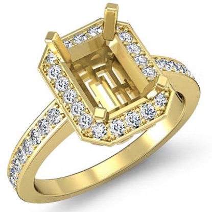 Diamond Engagement Ring Radiant Semi Mount 14k Gold Halo Pave Setting (0.35Ct. tw.)