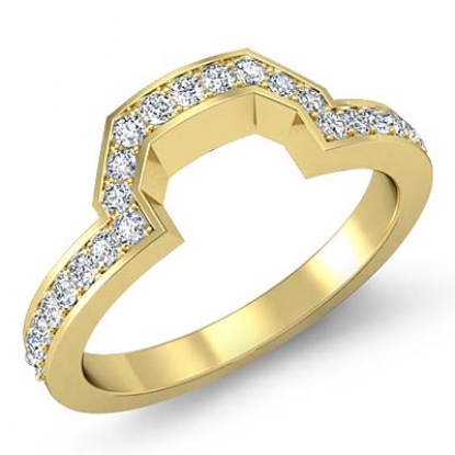 Round Pave Set Diamond Women's Half Wedding Band Made in 14k Gold Yellow Ring. Ideal Matching band for Item # R18659 Radiant Setting. (0.35Ct. tw.)