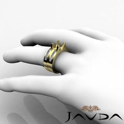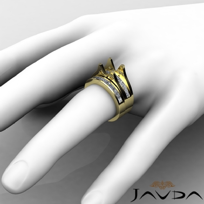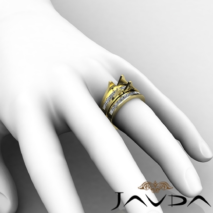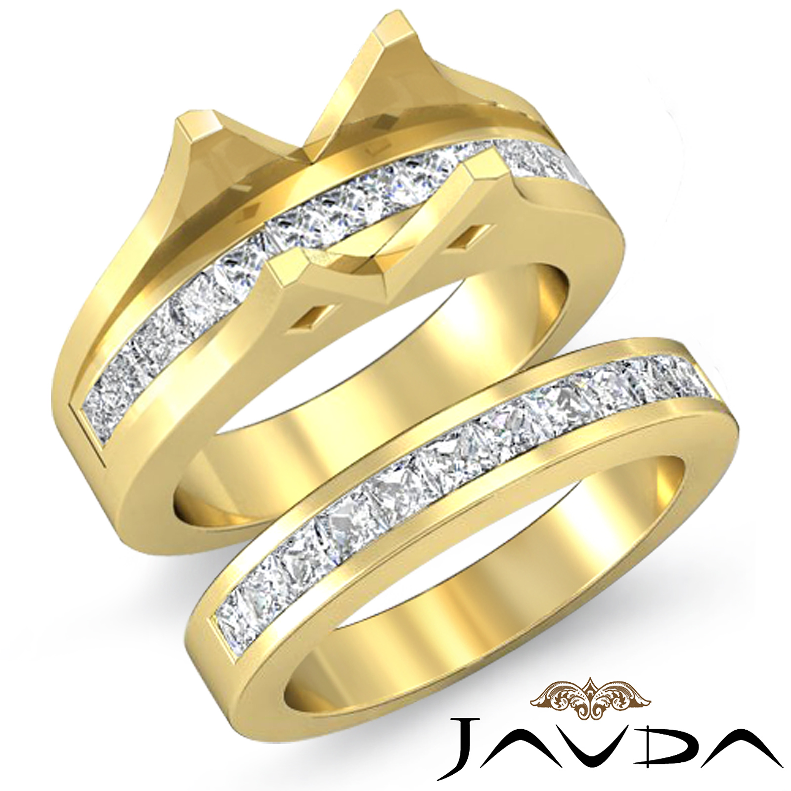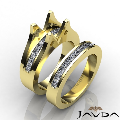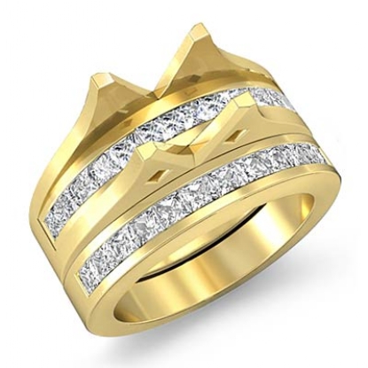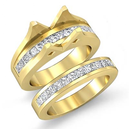 Unique in its own way! The princess channel set diamond engagement ring for round semi mount comes with a matching band. A complete bridal set made in 18k Gold Yellow. (2.1Ct. tw.)