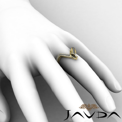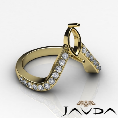 This strikingly sophisticated diamond engagement ring is made in 18k Gold Yellow. It showcases a marquise semi mount in prong setting, with pave set round diamond on the unique shank. (0.35Ct. tw.)
