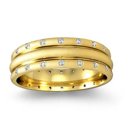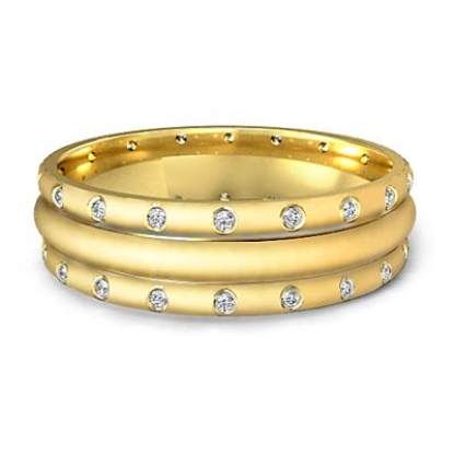 The gentlemen's diamond eternity wedding band made from solid 18k Gold Yellow. This ring features total round diamonds in a bezel setting with a smooth dome in the center.