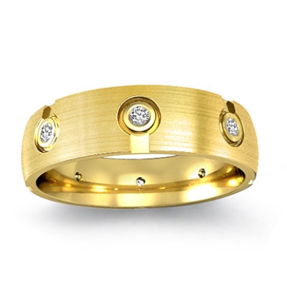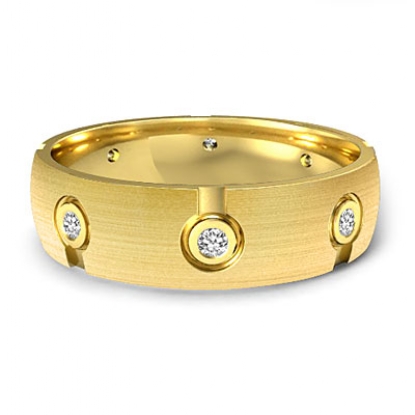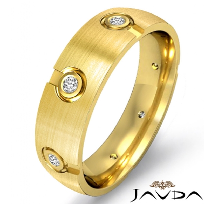 This unique design men's diamond eternity wedding band made from 14k Gold Yellow. The total round diamonds are set in a bezel setting. This stunning ring has matte finished and comfort fit.