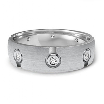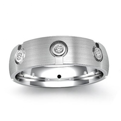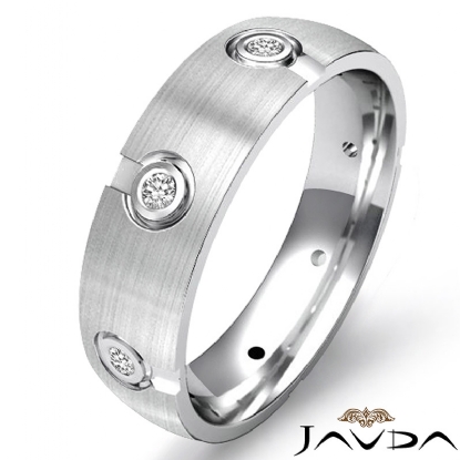 This unique design men's diamond eternity wedding band made from 18k Gold White. The total round diamonds are set in a bezel setting. This stunning ring has matte finished and comfort fit.