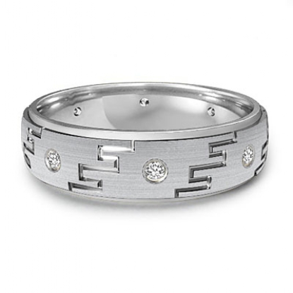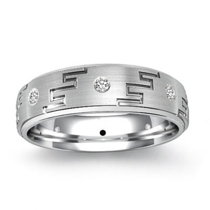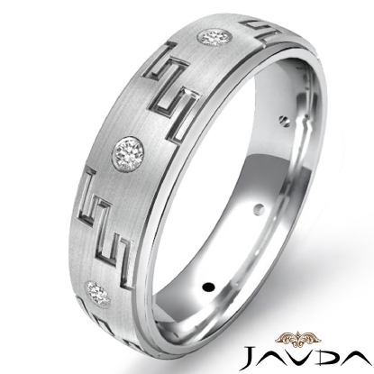 Greek Key Men's Bezel Set Diamond Eternity Wedding Band Platinum (0.1Ct. tw.)