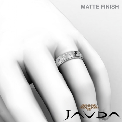 The greek key design men's diamond eternity wedding band made from solid Platinum 950. Featuring step edge with total round diamonds in a bezel setting. This matte finished handsome ring is comfort fit.