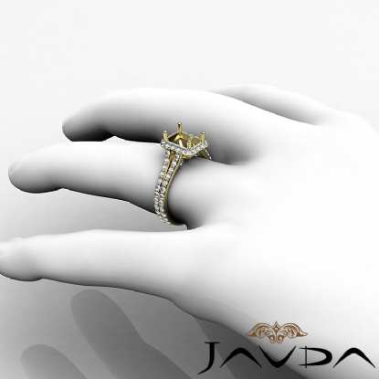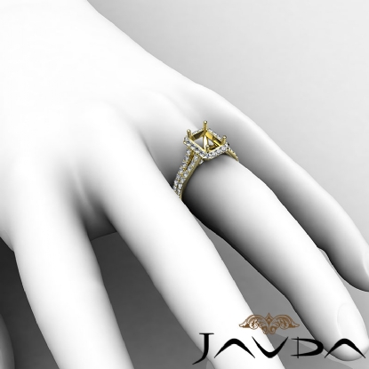 Diamond Emerald Semi Mount Engagement Ring Halo Pave Setting 14k Gold (1.2Ct. tw.)