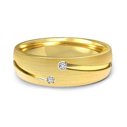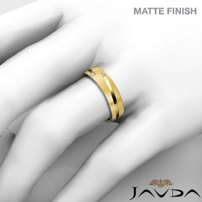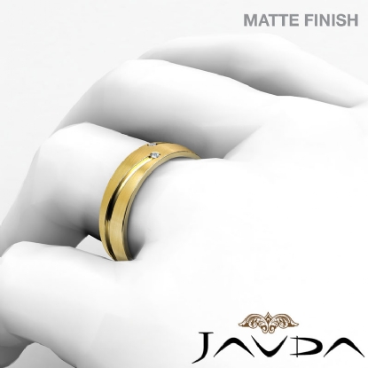 Classic matte finished men's diamond eternity wedding band made from 14k Gold Yellow. Featuring total 2 round diamonds are set in a bezel setting. This handsome comfort fit ring available in 14k & 18k white gold, yellow gold and rose gold & platinum 950. (0.26Ct. tw.)