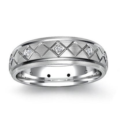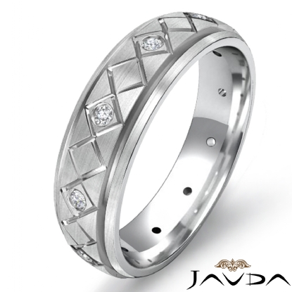Matte Eternity Men's Wedding Band Diamond Cut Step Edge 18k W Gold (0.15Ct. tw.)