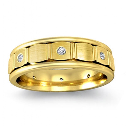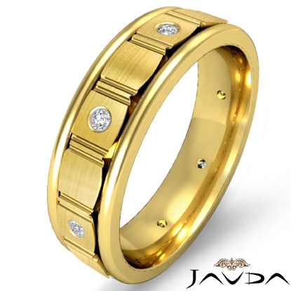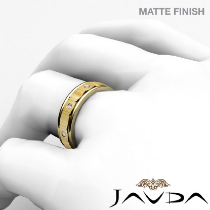 Vertical Cuts Brushed Finish Eternity Men's Wedding Band 18k Gold (0.15Ct. tw.)