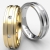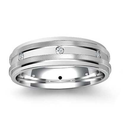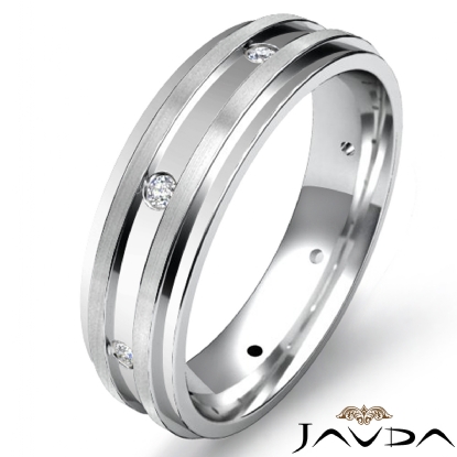 A solid men's wedding band made from Platinum 950. This ring features polished step edge and matte finished center with total round diamonds in a bezel setting.
