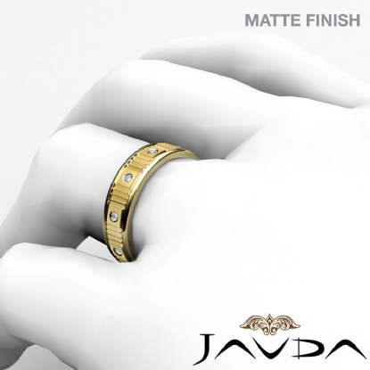 Verticle Cuts Matte Bezel Diamond Eternity Men's Wedding Band 14k Gold (0.13Ct. tw.)