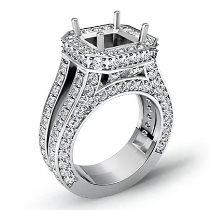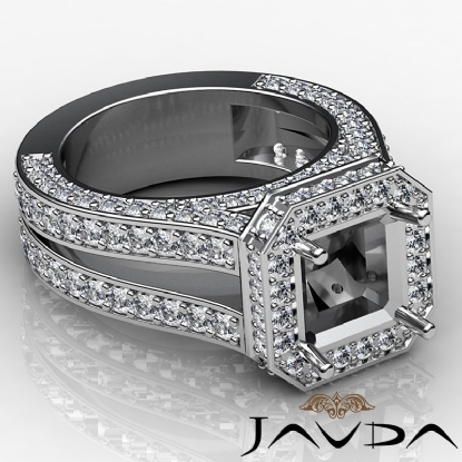 Diamond Engagement Ring Halo Setting 18k W Gold Asscher Semi Mount (2.52Ct. tw.)