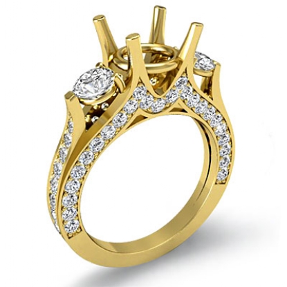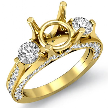 Three 3 Stone Round Diamond Engagement Ring Setting 14k Gold Semi Mount (1.3Ct. tw.)