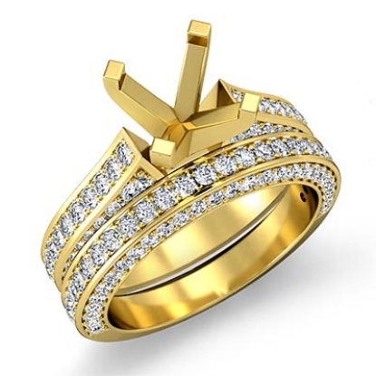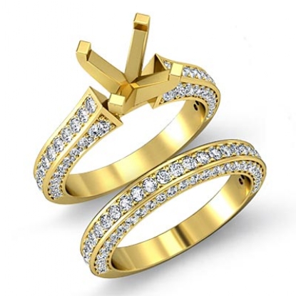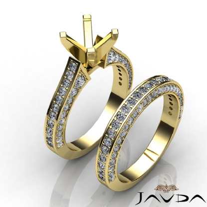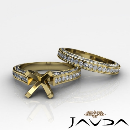 Eyes will be fixated on this immaculate 18k Gold Yellow semi mount diamond engagement ring, showcasing pave set diamonds that complement your choice of center diamond. Total weight of this bridal set is . (2.2Ct. tw.)