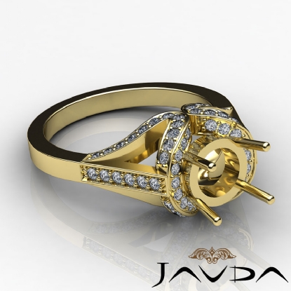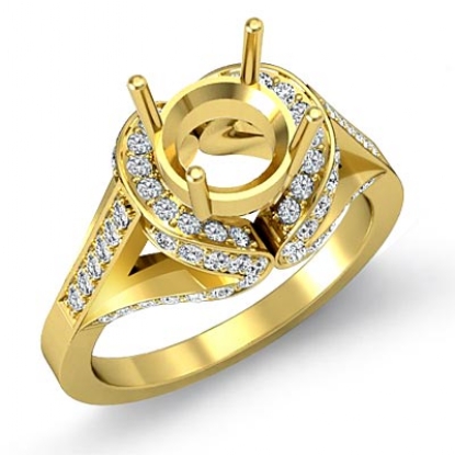 Undeniably striking, this round semi mount diamond engagement ring is made in 14k Gold Yellow. It features a spectacular shank & halo that dazzle with pave set round diamonds. (1.2Ct. tw.)