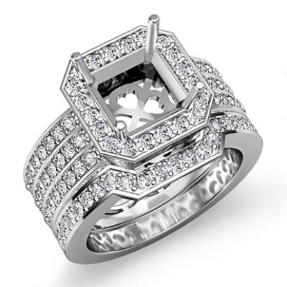 3 Row Diamond Engagement Ring Bridal Setting Platinum Semi Mount (2Ct. tw.)