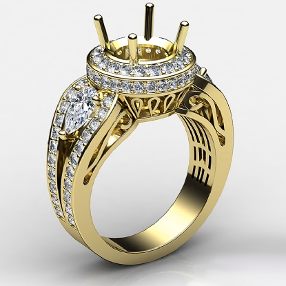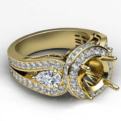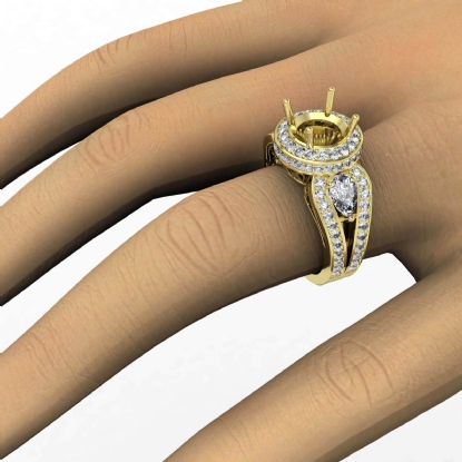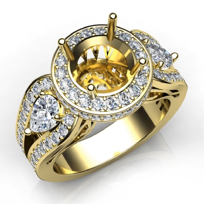 Capture the moment with this 18k Gold Yellow 3 Stone engagement ring, featuring a round semi-mount halo of round diamonds. It showcases of total round diamonds &
