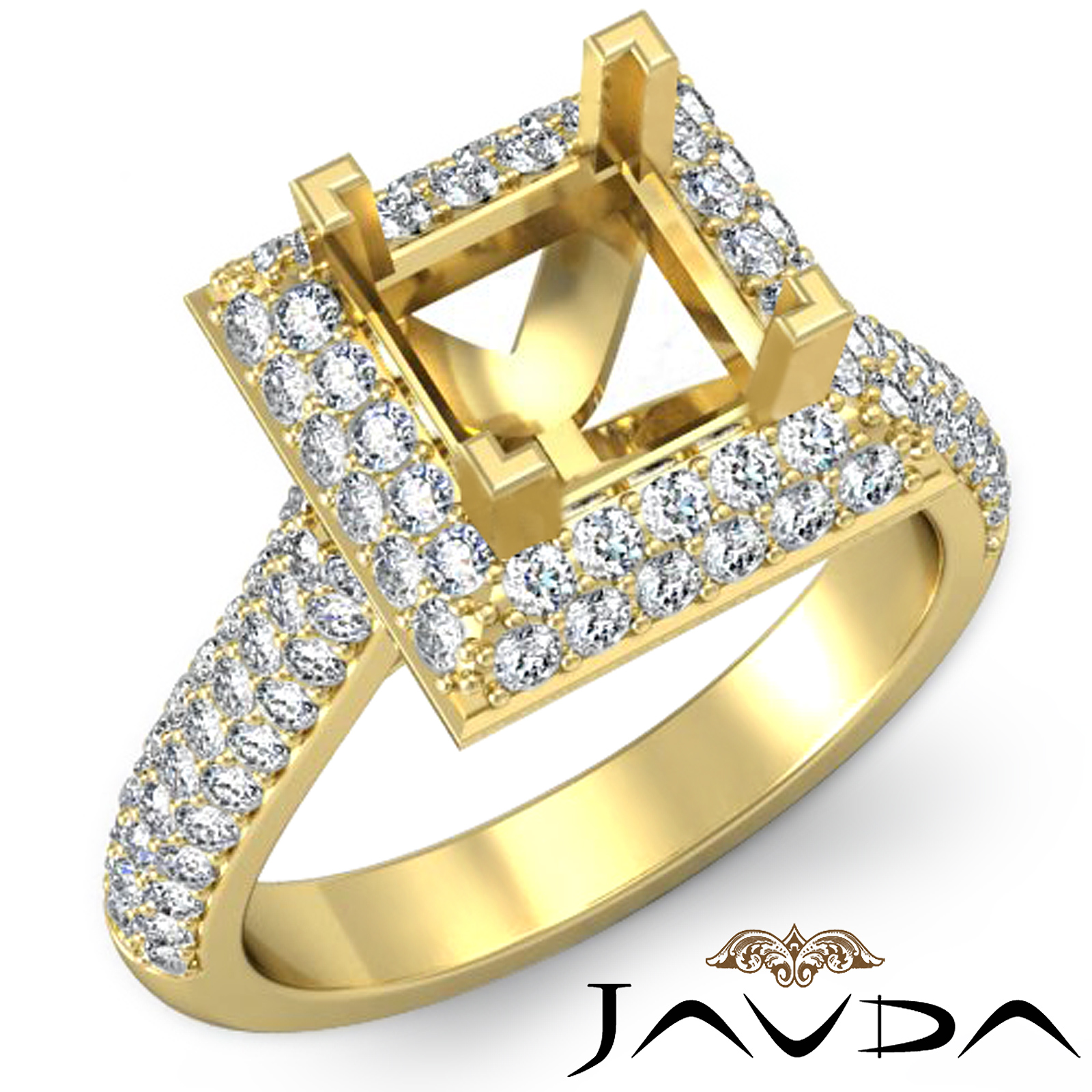 Diamond Engagement Princess Ring 14k Gold Halo Semi Mount (1.4Ct. tw.)