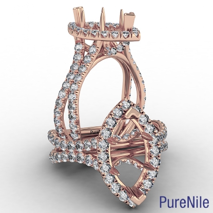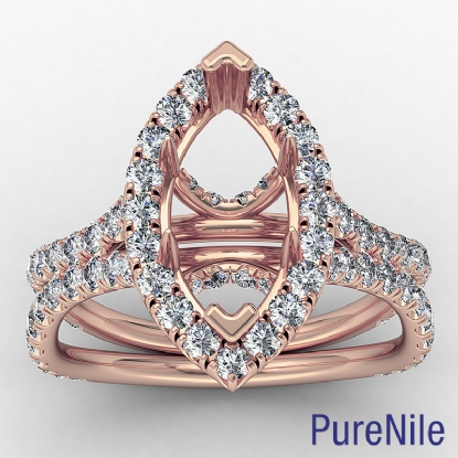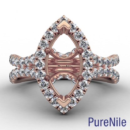 Marquise Semi Mount Split Shank Halo Diamond Engagement Ring 18k Rose Gold (1.1Ct. tw.)
