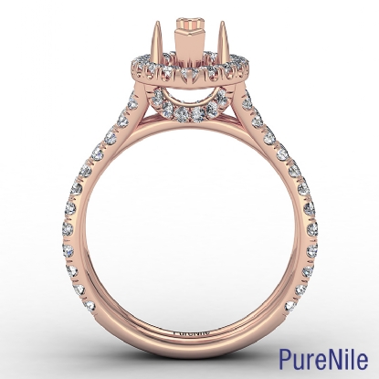 Breathtaking marquise halo diamond engagement ring made from 18k Rose Gold. This halo diamond ring features marquise cut semi mount and side diamonds in a french U split pave setting on halo, shank and additional diamonds on bridge make this ring look more luxurious. Available in white gold, yellow gold, rose gold and platinum. (1.1Ct. tw.)