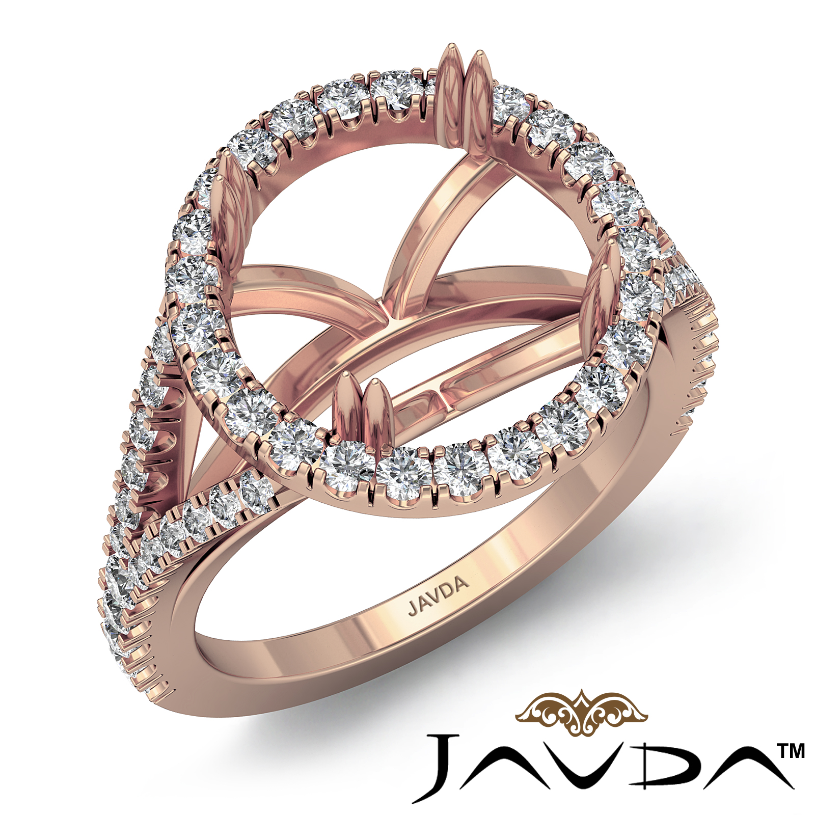 U Split Prong Halo Round Semi Mount Diamond Engagement Ring 14k Rose Gold (0.74Ct. tw.)