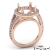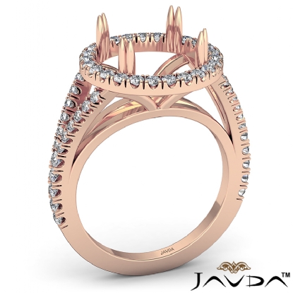 Elegant U split prong halo round semi mount engagement ring made from 14k Rose Gold. This diamond ring features total round diamonds along the shank and halo in a split prong setting.