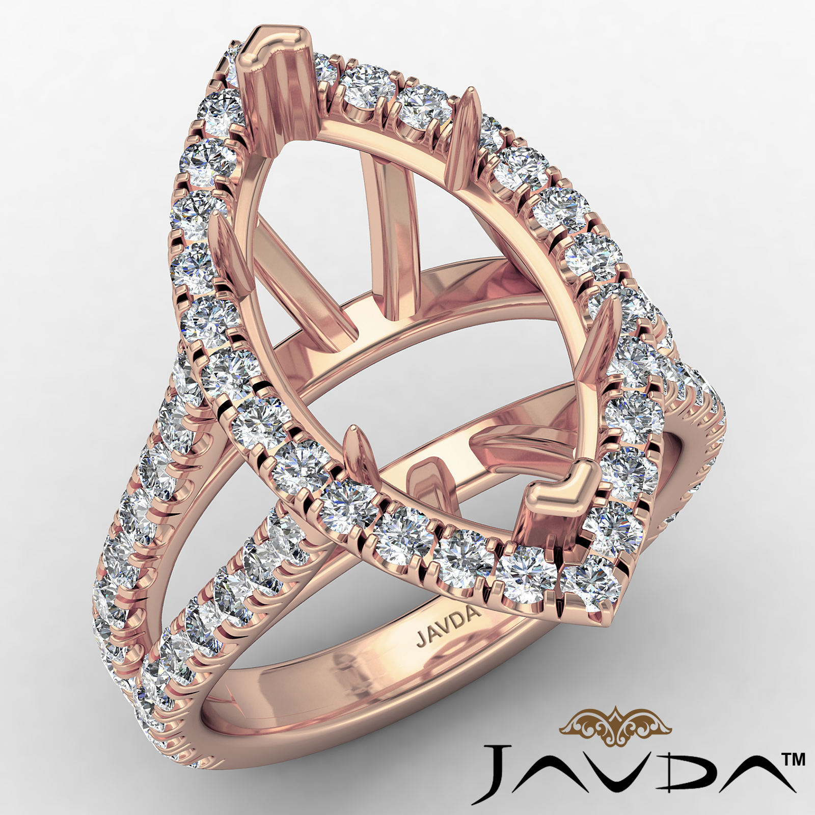 U Split Pave Halo Marquise Semi Mount Diamond Engagement Ring 14k Rose Gold (1.05Ct. tw.)