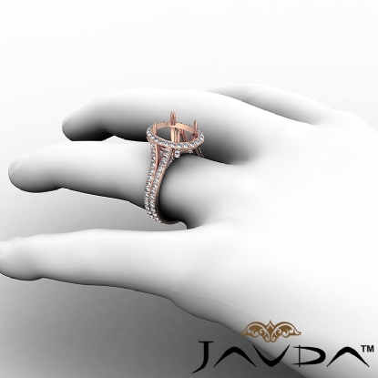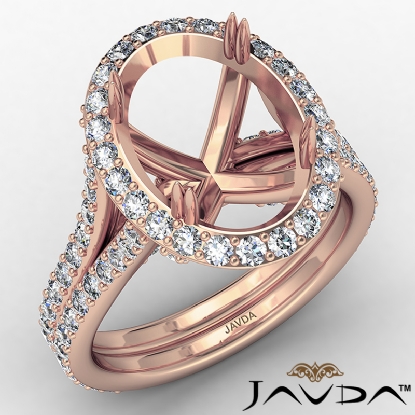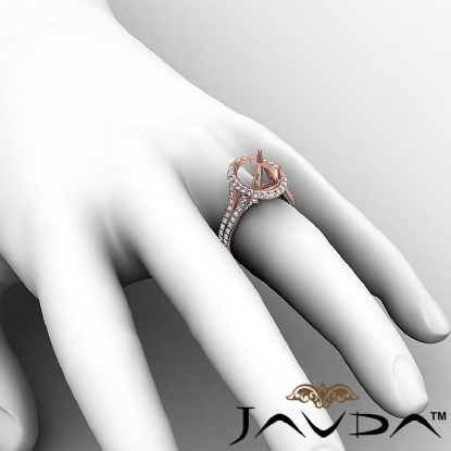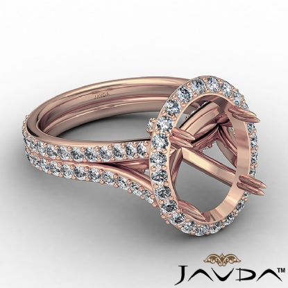 Halo Oval Semi Mount Diamond Engagement Ring Split Shank 18k Rose Gold (1.05Ct. tw.)