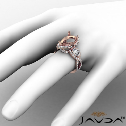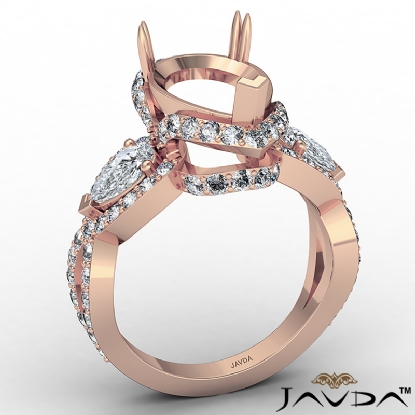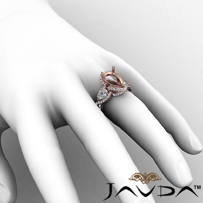3 Stone Cross Shank Pear Semi Mount Diamond Engagement Ring 14k Rose Gold (1.96Ct. tw.)