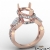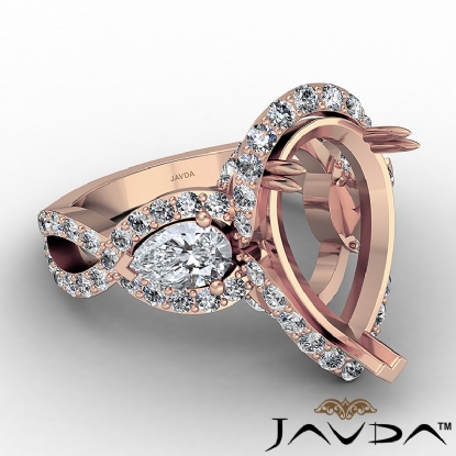 Elegant 3 stone cross shank pear semi mount diamond engagement ring made from 14k Rose Gold. This diamond ring features total round diamonds along the cross shank and crown halo in a pave setting.