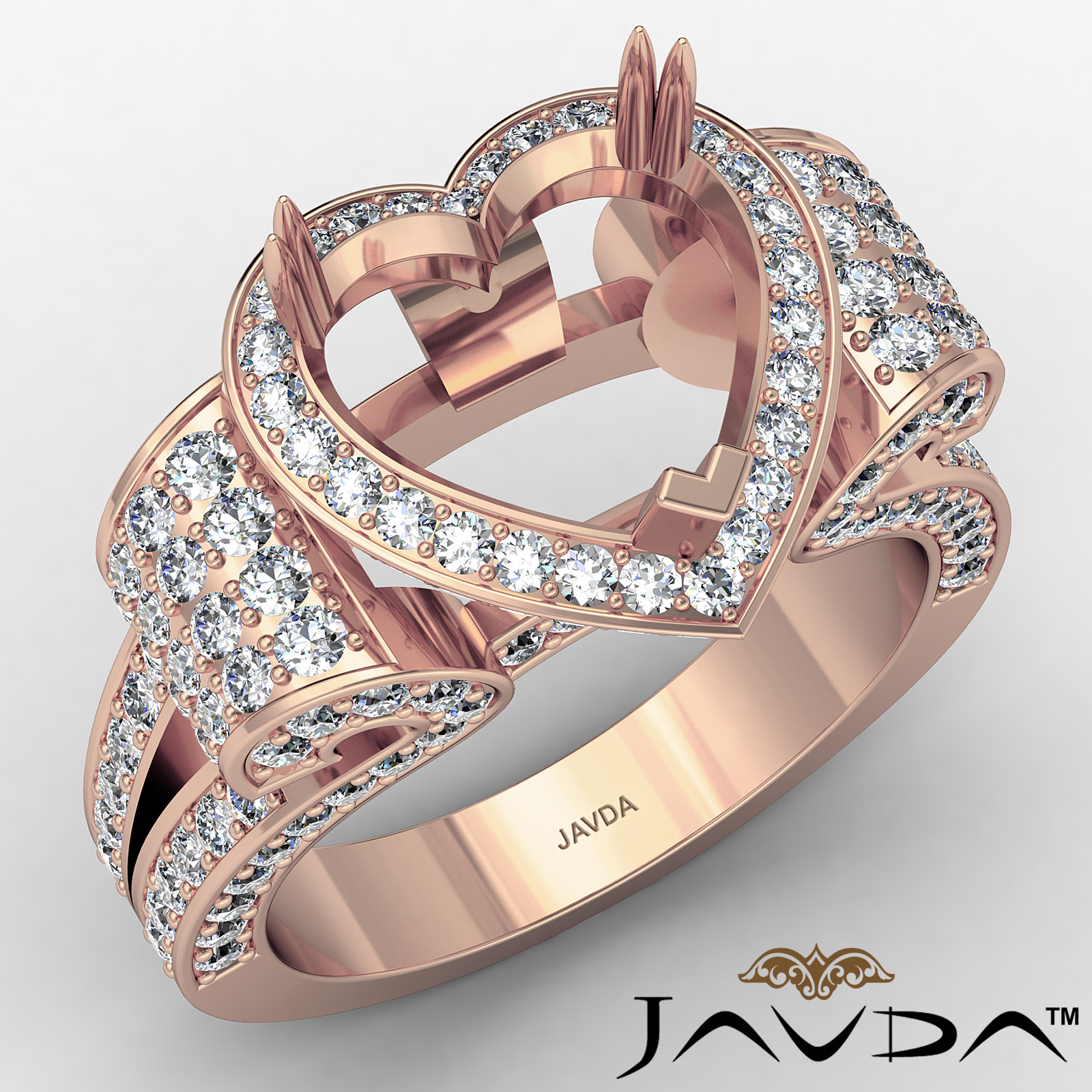 Vintage Halo Heart Semi Mount Diamond Engagement Ring 14k Rose Gold (1.57Ct. tw.)