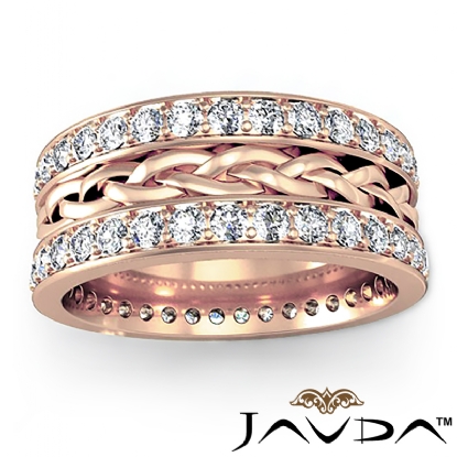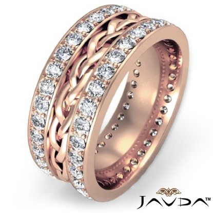 Braided Design Pave Diamond Men's Eternity Wedding Band 14k Rose Gold (1.85Ct. tw.)