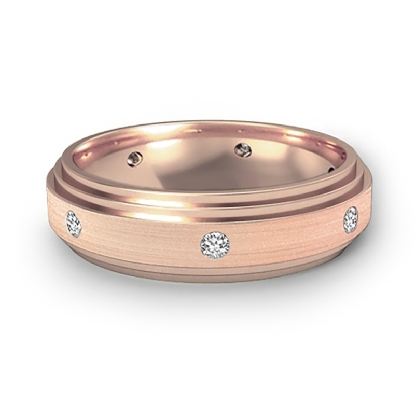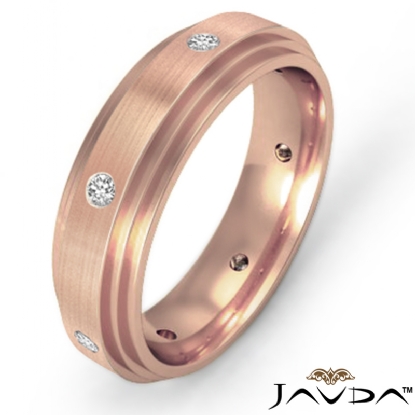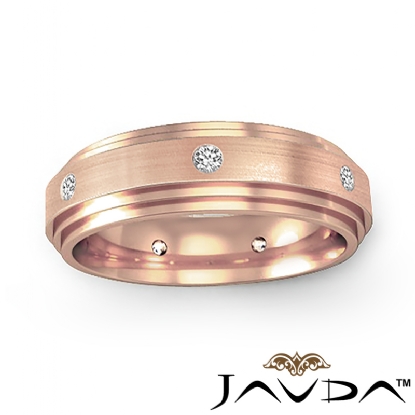 Diamond Eternity Men's Wedding Band Step Edge Brushed 14k Rose Gold (0.16Ct. tw.)