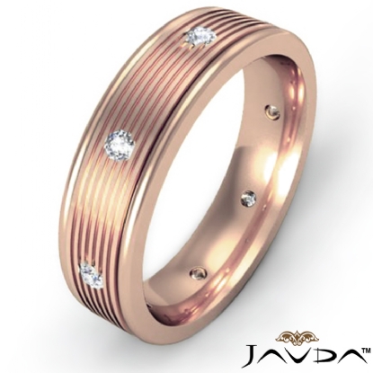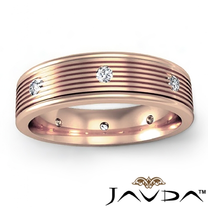 Parallel Grooves Diamond Eternity Men's Wedding Band 14k Rose Gold (0.16Ct. tw.)