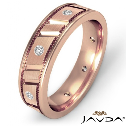 Brush Finish Center Mens Diamond Eternity Wedding Band 14k Rose Gold (0.25Ct. tw.)