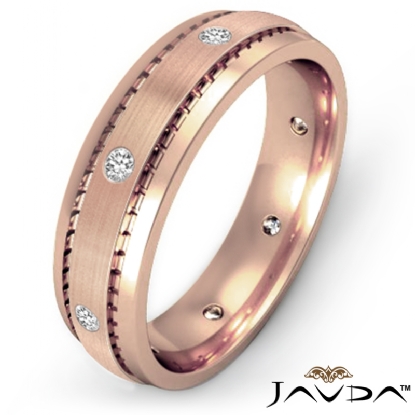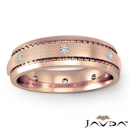 Men's Diamond Eternity Wedding Band Matte Bezel Set 14k Rose Gold (0.16Ct. tw.)