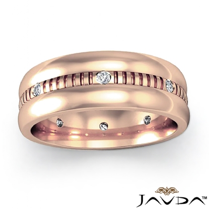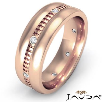 Dome Vertical Cuts Men's Diamond Eternity Wedding Band 14k Rose Gold (0.16Ct. tw.)