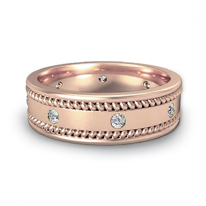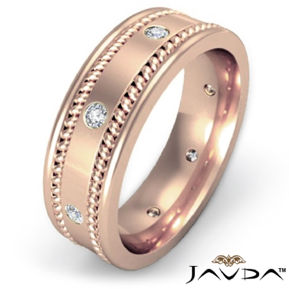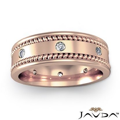 Rope Edges Bezel Diamond Eternity Men's Wedding Band 14k Rose Gold (0.2Ct. tw.)