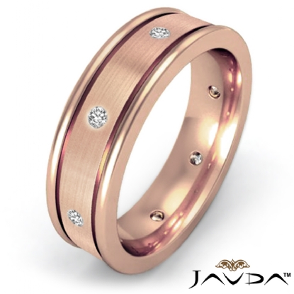 Brushed Center Bezel Diamond Men's Eternity Wedding Band 14k Rose Gold (0.2Ct. tw.)